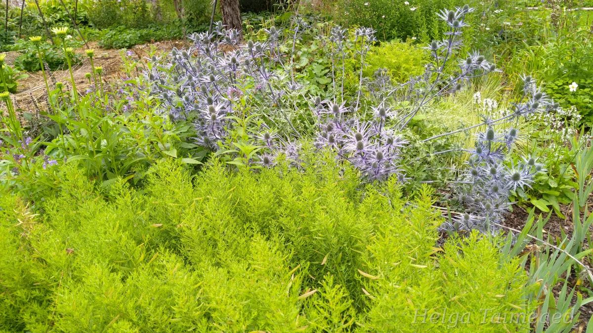 Aastal 2018. aastal sai teoks üks 10 aastat paberil olnud idee- püsililledest labürint. Varakevadel alustavad siin krookused ja iirised, siis kobarhüatsindid ja tulbid. Seejärel tulevad juba kõik teised püsikud ja annavad järk-järgult teatepulga edasi.