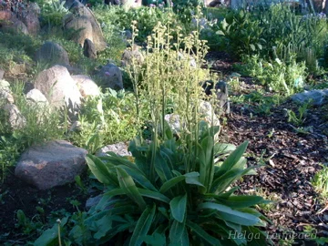 Это влаголюбивый вид, пышные зеленые листья которого образуют зеленую подушку. Весной появляется цветонос высотой до 40–60 см, увенчанный мелкими желтовато-белыми цветками. Предпочитает полутень солнцу, но лучше всего чувствует себя во влажном и прохладном месте, например, на берегу водоема.
